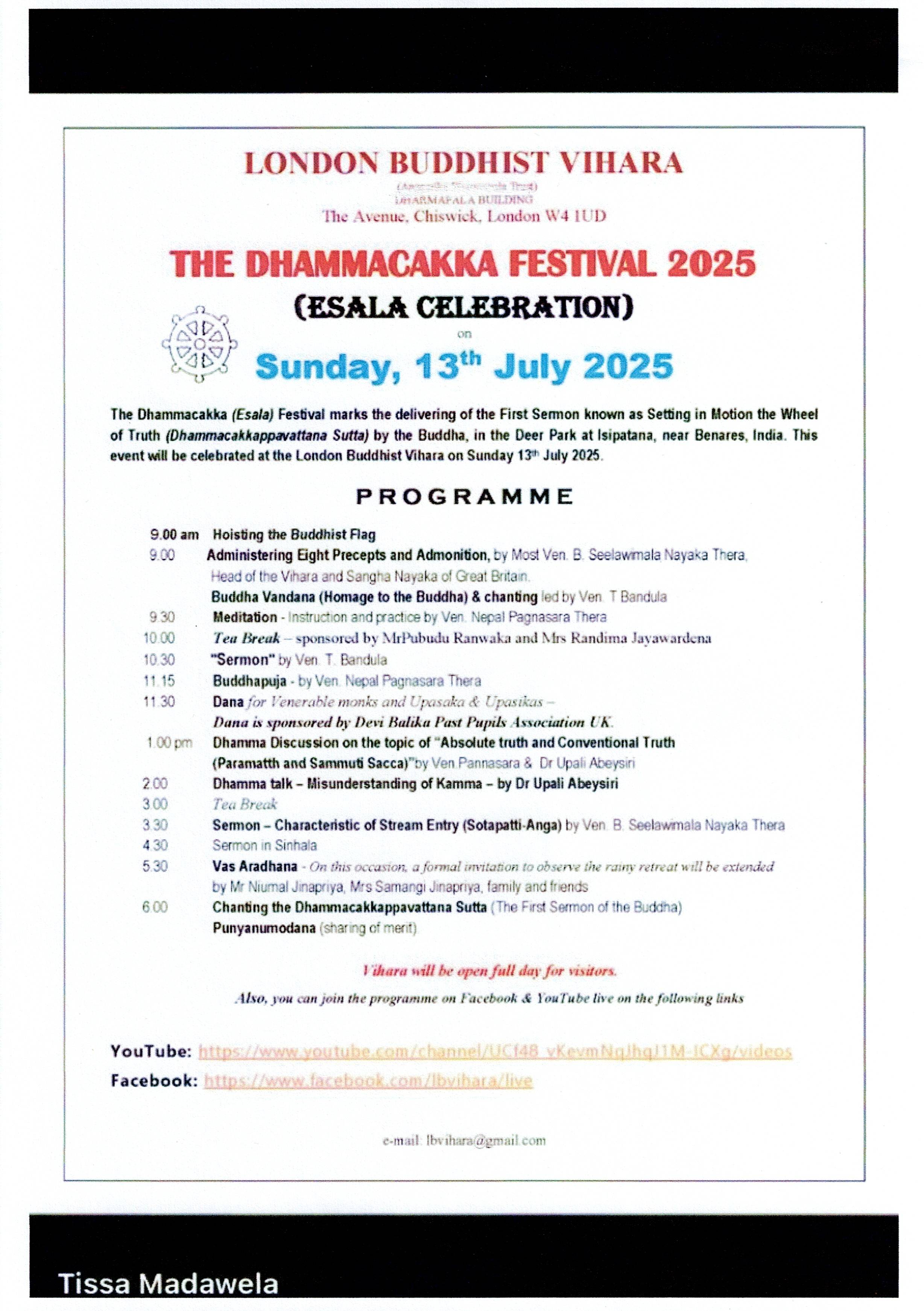 As mentioned above, we the trustees, the Head Monk, Ven. Bandula and the resident monks have a high regard for our supporters who have helped the Vihara so much over the years. Should you require any clarification on these matters please do not hesitate to contact us. You can also check the current situation of the LBV Trust on the Charity Commission website under London Buddhist Vihara Trust (Charity registration 1192854).