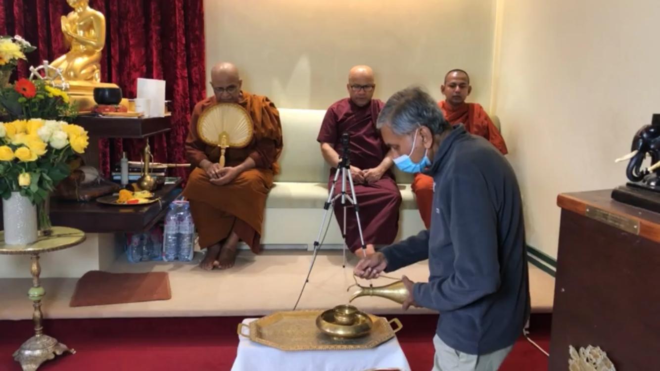 Due to the restrictions imposed by the Coronavirus pandemic, dayakas and supporters of the Vihara could not be accommodated this time, therefore the event was live streamed on Facebook.