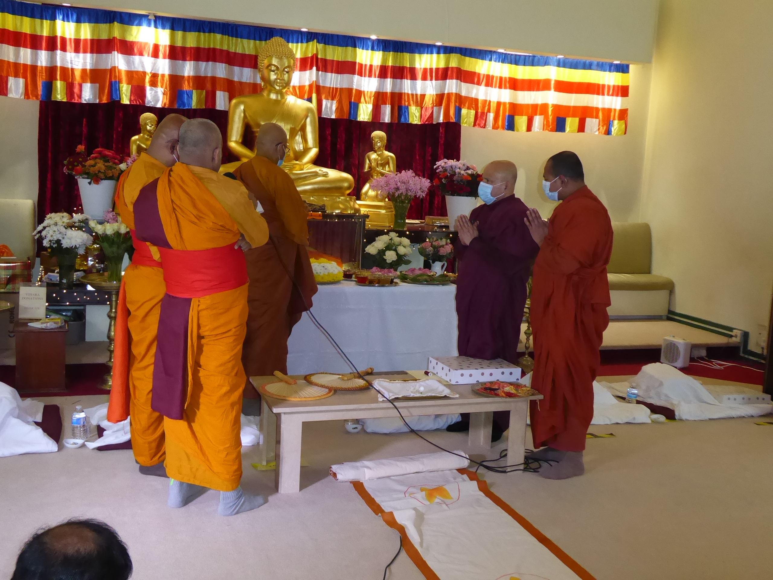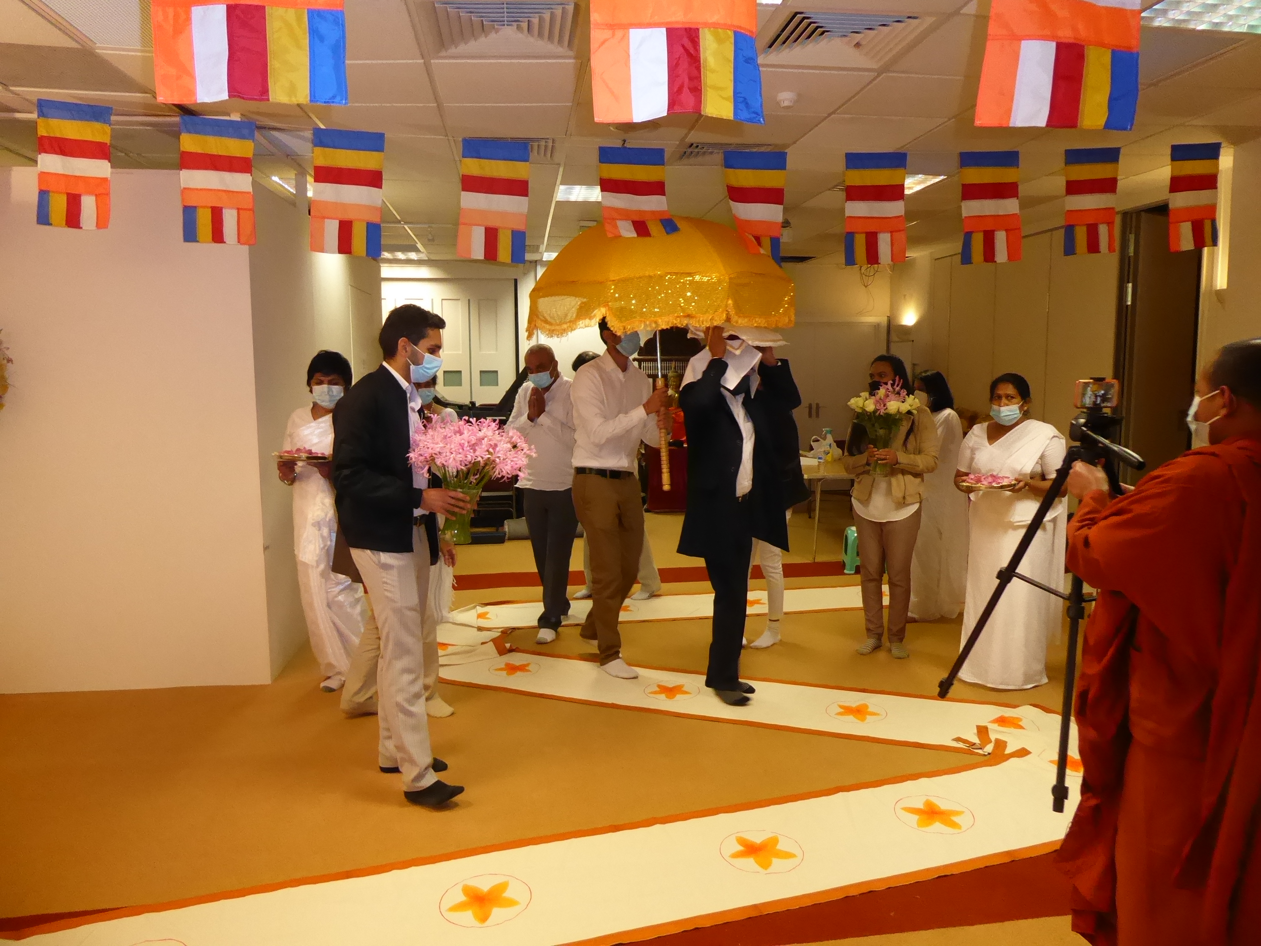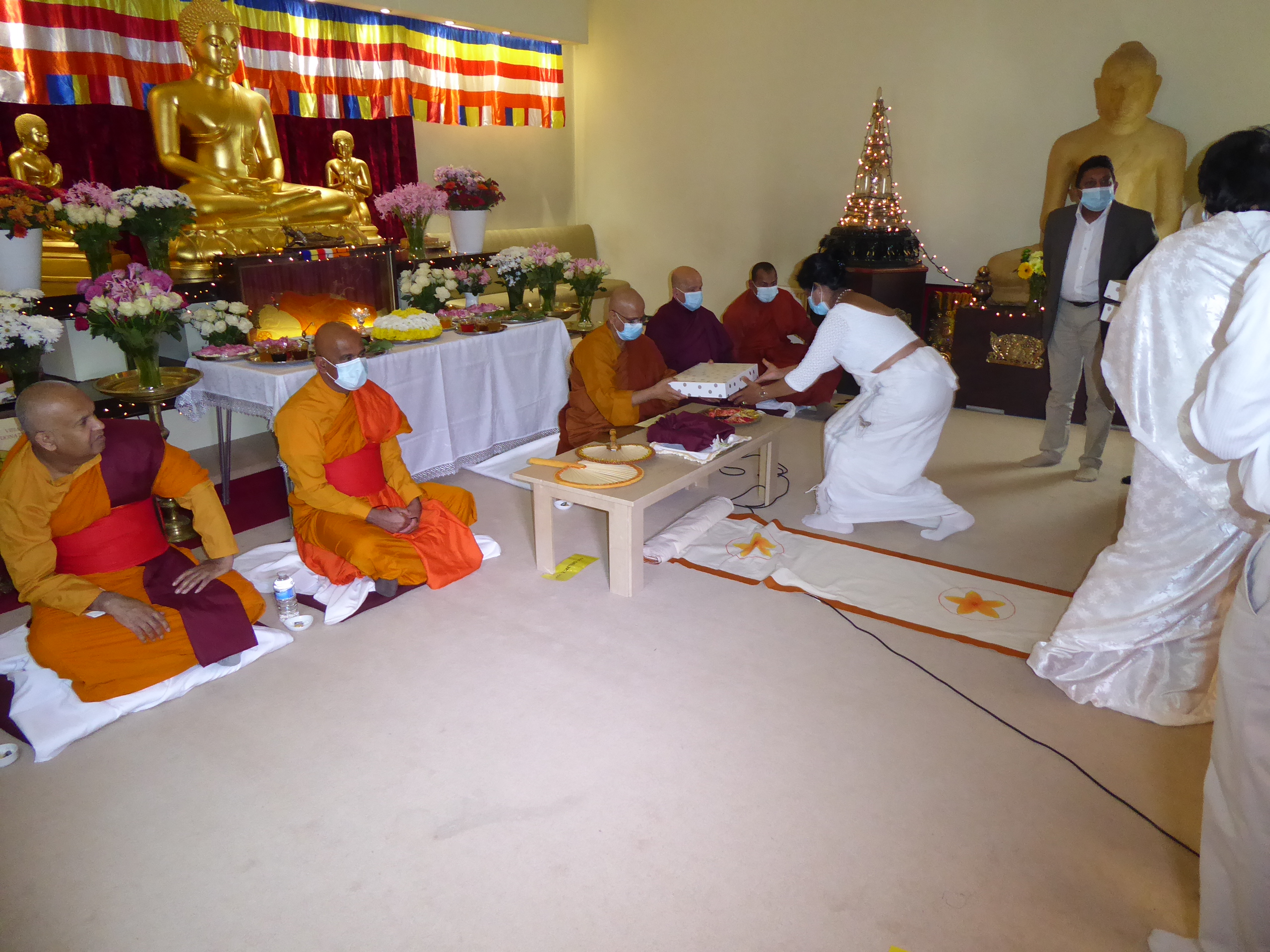 Due to the current Covid-19 pandemic restrictions applicable to Places of Worship, only 15 persons could be accommodated at the Vihara. Therefore the visitors to the ceremony were limited the members of the sponsoring families.