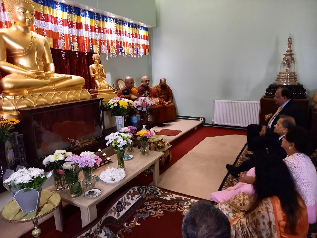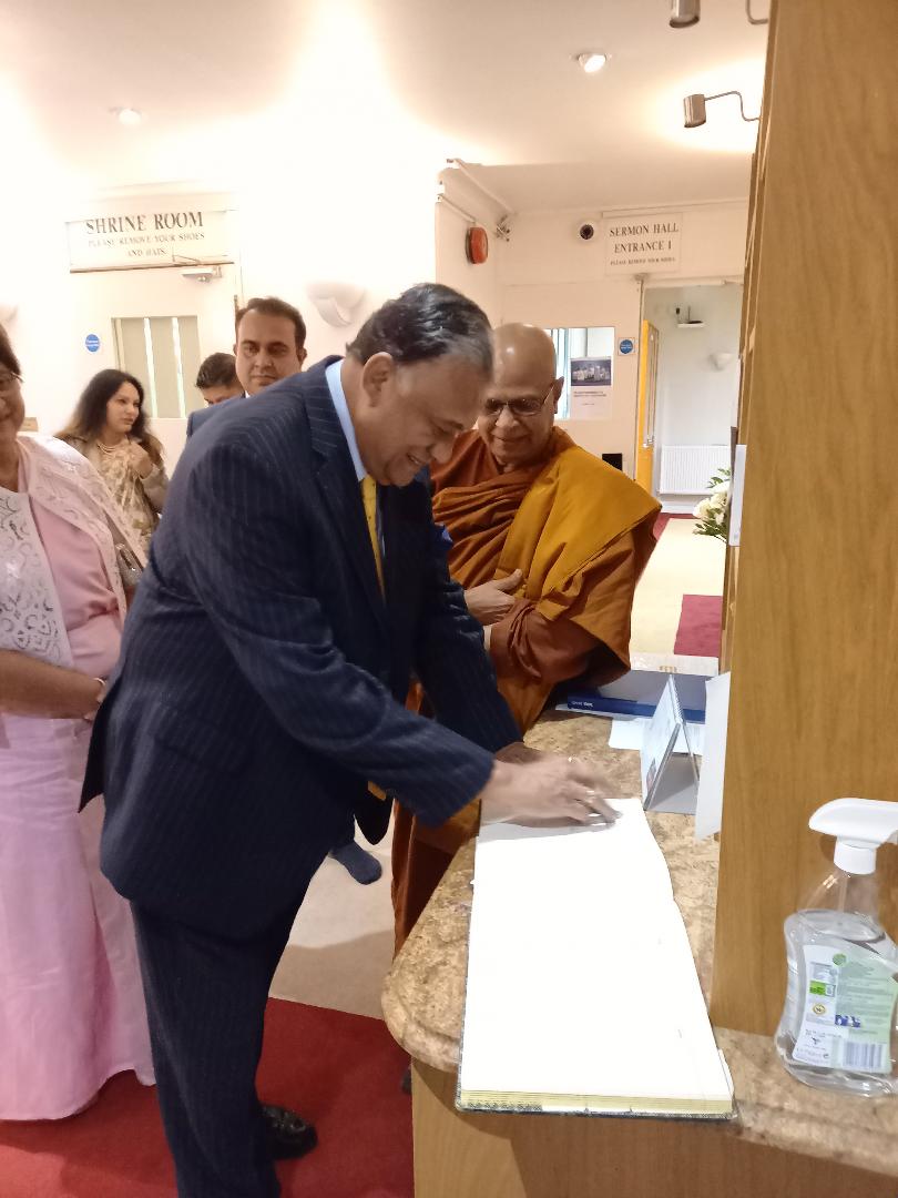 He and his wife were welcomed by the Head Monk Ven. Bogoda Seelawimala and the Trustees of the London Buddhist Vihara Trust.